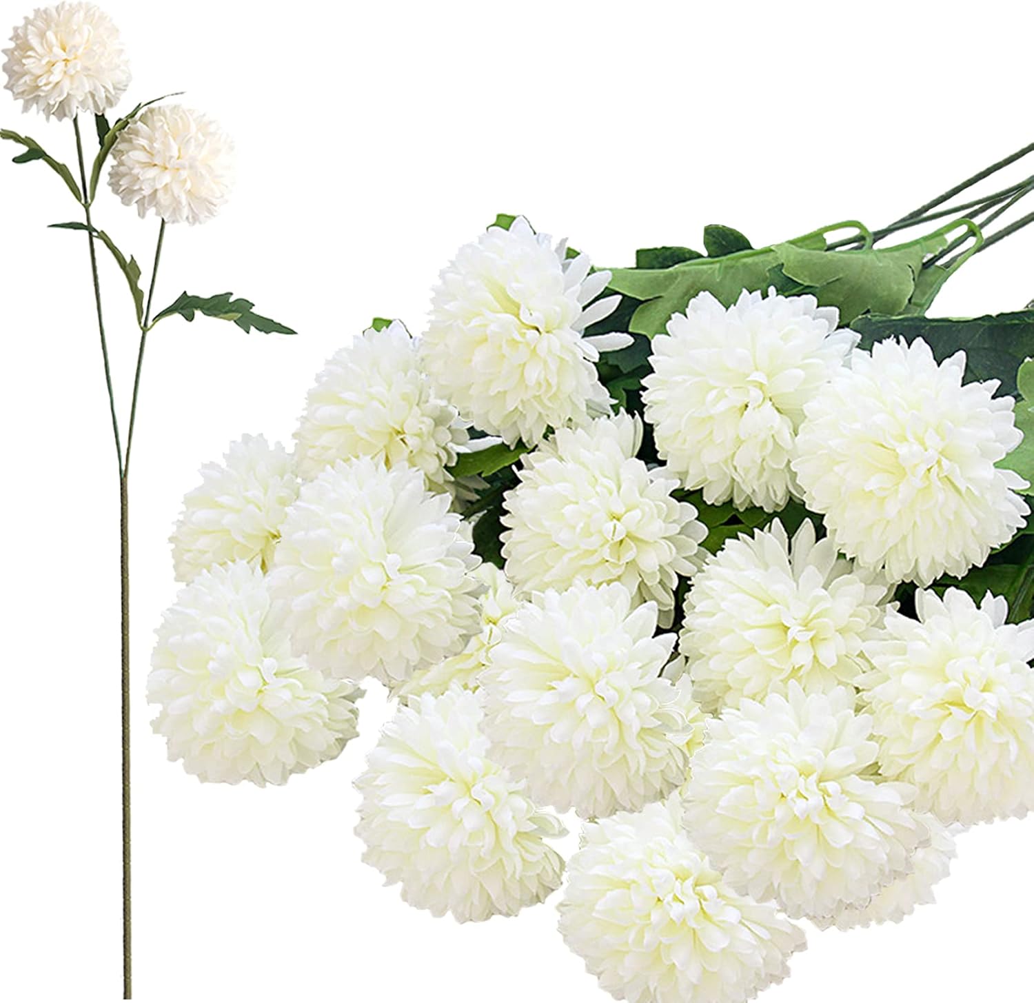 - Package: 12 pcs Two Head Chrysanthemum Ball long stem flowers in one pack. Vase not included in pack.