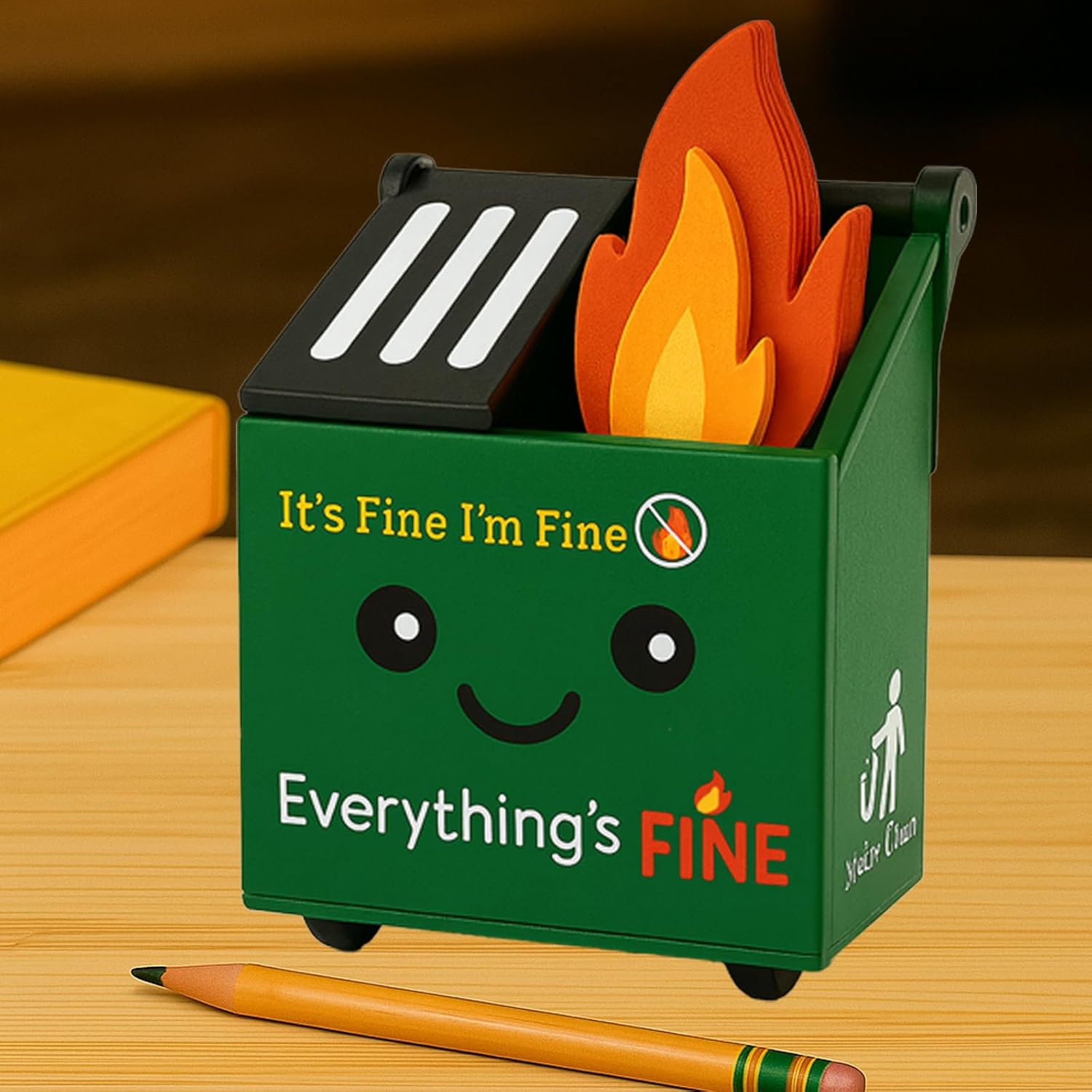 - FUN & STYLISH PENCIL HOLDER: Turn your desk into a fun disaster zone with this Trashcan Fire pen holder! Featuring a playful “everything is fine” design and an adorable graphic, it's the perfect mood booster for chaotic days. Whether you're battling a deadline or just want to have a good laugh, this quirky pen holder will make your life a little less ...... Garbage