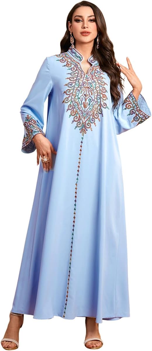 OBEEII Abayas for Women Muslim Applique Embroidery Long Sleeve Maxi Dress Loose Full Cover Islamic Dubai Robe Kaftan Abayas