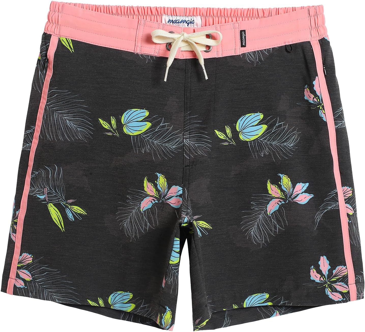 maamgic Men's Swim Trunks Board Shorts Vintage Beach Shorts 4 Way Stretch Quick Dry with Zipper Pockets