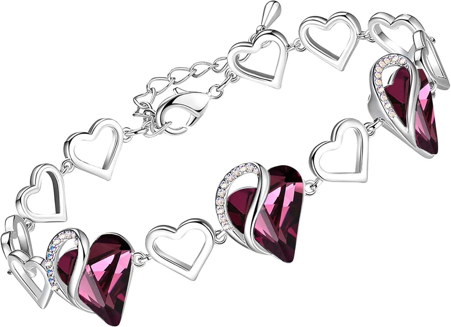 Leafael Infinity Love Heart Link Bracelets, Birthstone or Healing Stone Crystal Bracelet for Women, Silver Tone Jewelry Gifts for Her, 7-inch Chain and 2-inch Extender