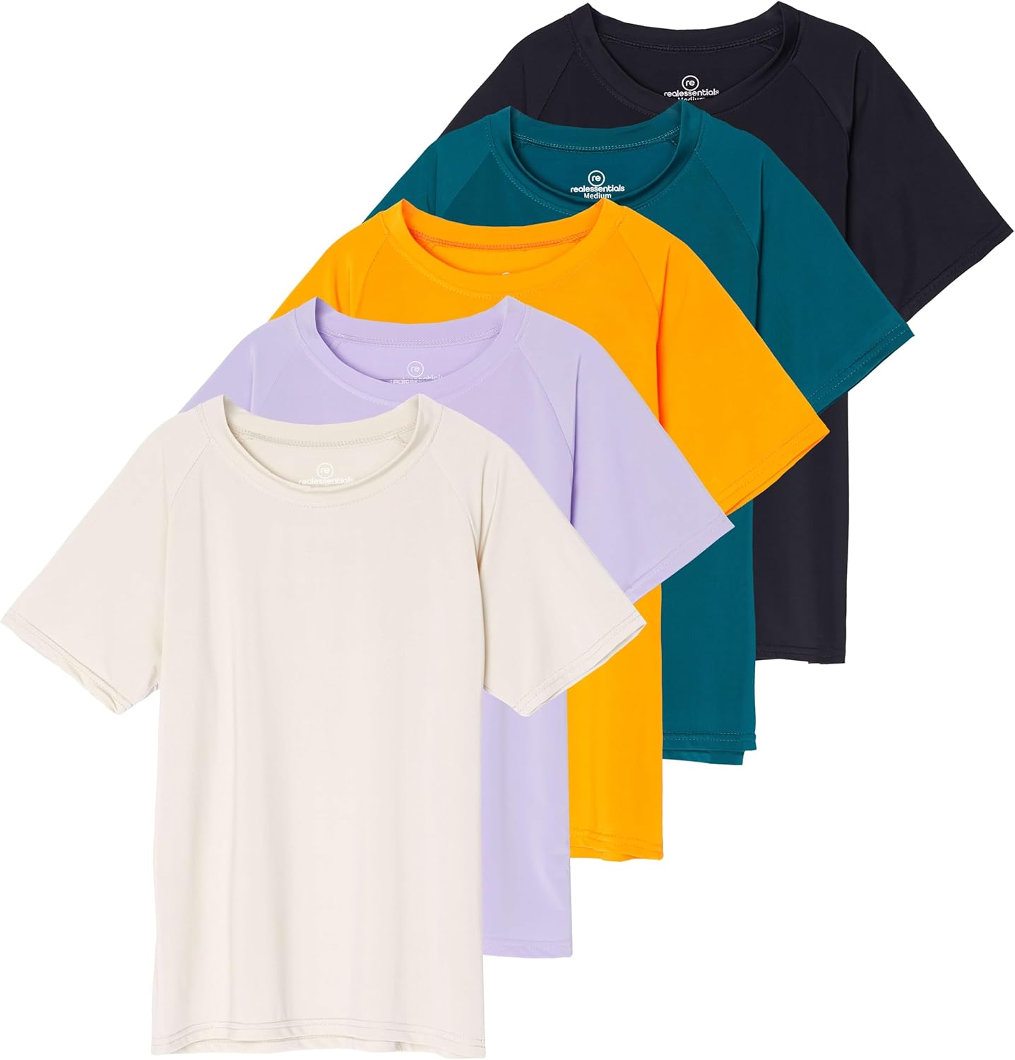 Real Essentials 5 Pack: Girls’ Rash Guard Swim Shirts – Short Sleeve UPF Sun Protection Tops (Ages 4-16)