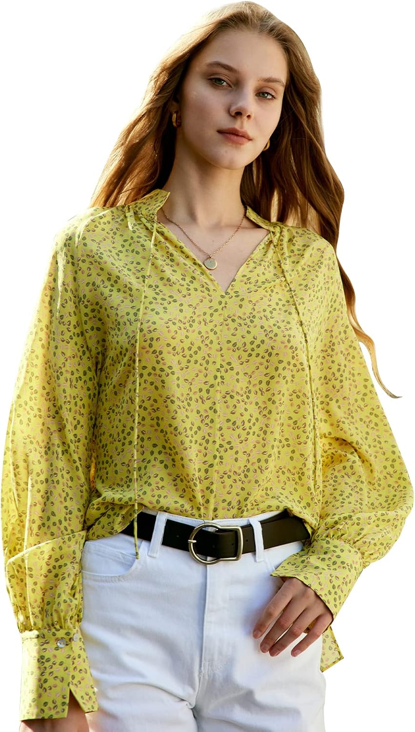 Silk Blouse for Women 100% Pure Silk Shirt Long Sleeve Luxury Smooth V-Neck Tops Womens Spring Striped Shirts