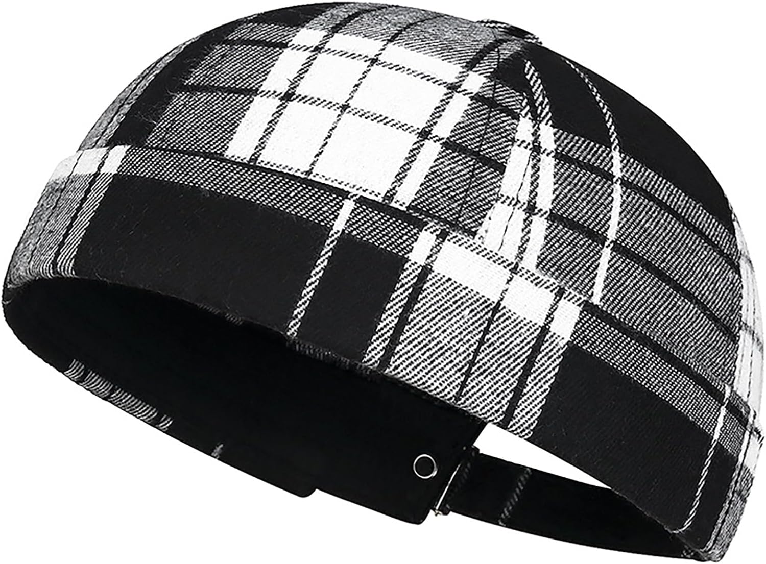 Striped Plaid Brimless Worker Cap,Retro Skullcap Docker Hat for Men Womens