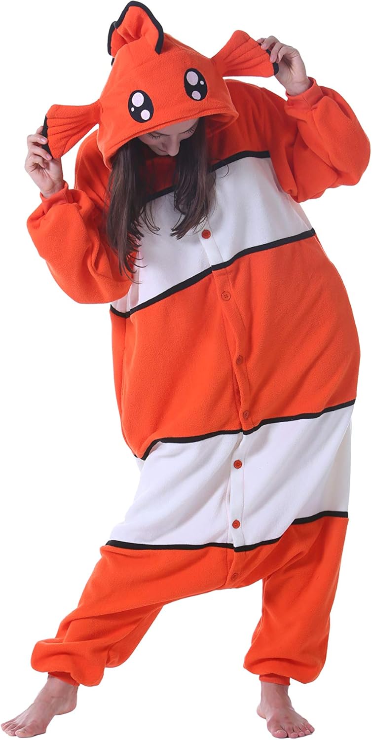 DarkCom Clownfish Onesie Halloween Costume One Piece Unisex Adult Pajamas Women Men Sleepwear Christmas Pajamas