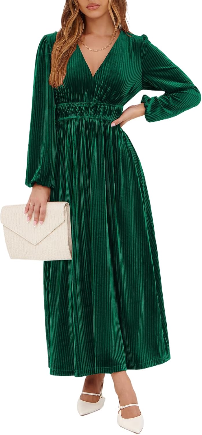 Sissyaki Women's Long Sleeve Velvet Dresses Fall Winter Long Dress Wedding Guest Party Maxi Dress