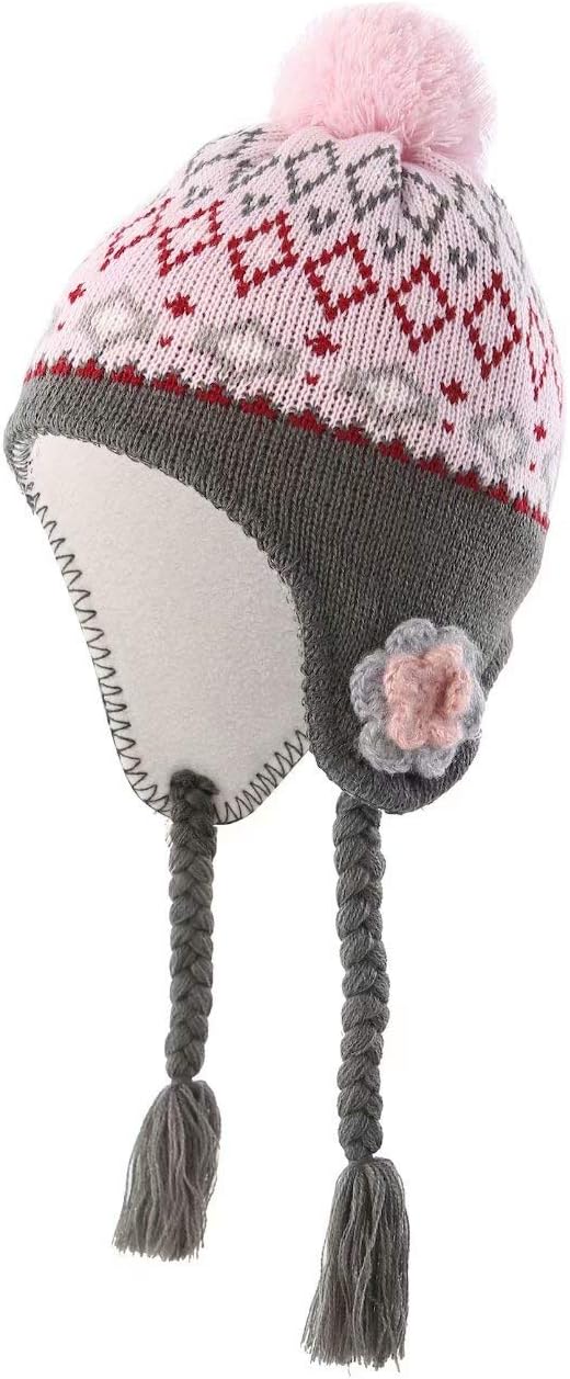 Home Prefer Toddler Girls Winter Hats Earflaps Beanie Fleece Lined Knit Kids Hat