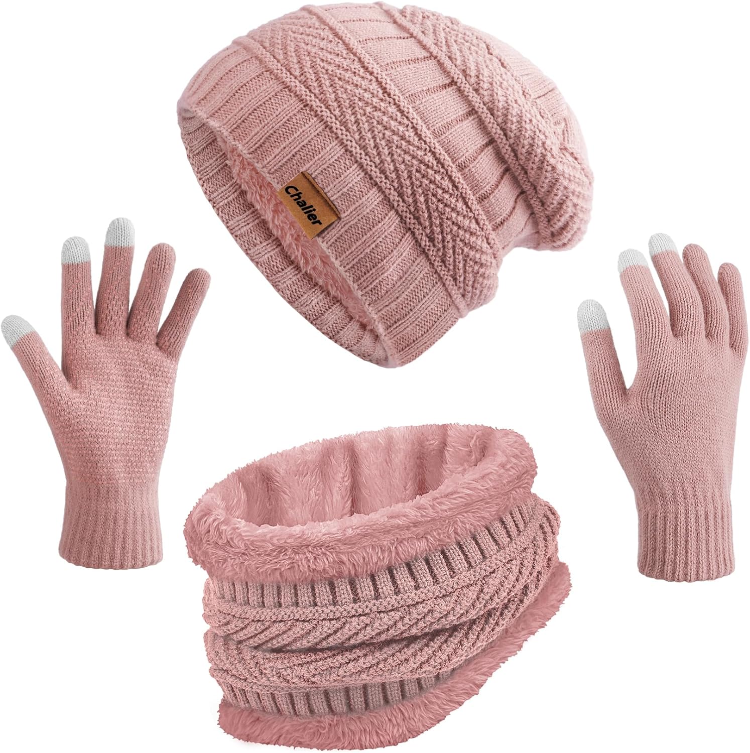 Winter Hats for Women Beanie Hat Warm Thick Knit Skull Cap Hat and Scarf Gloves Sets