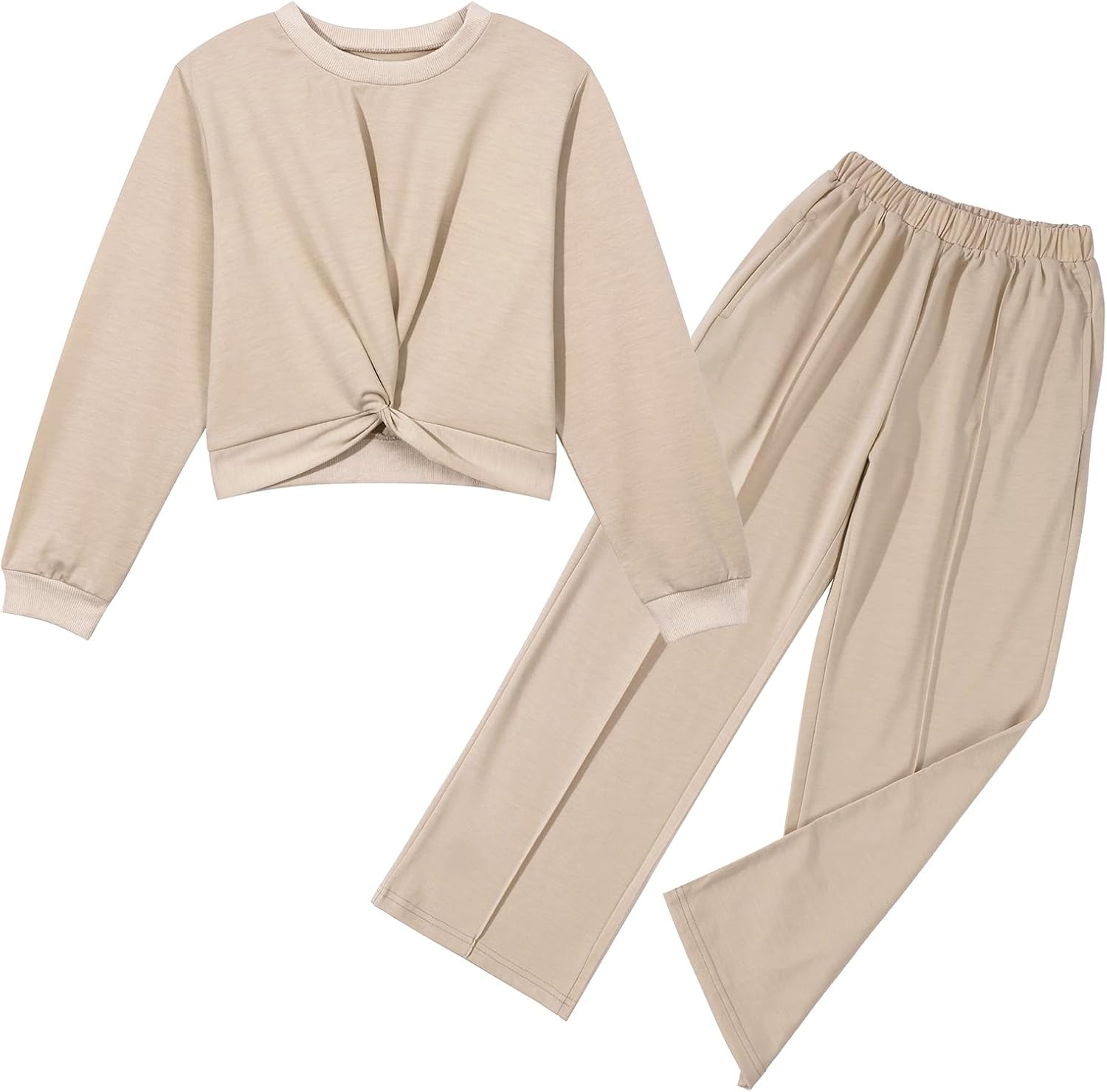 Zupora Girls Fall Outfits 2 Piece Sweatsuit Twist Front Pullover Sweatshirt Wide Leg Sweatpants Tracksuit Kid Clothing Set
