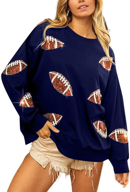 MOUSYA Womens Sequin Football Sweatshirt Game Day Long Sleeve Shirt Sunday Funday Pullover Casual Crewneck Tops