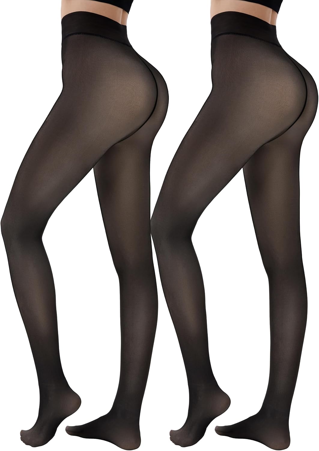 HONGTEYA 2 Pairs Fleece Lined Tights Women - Warm Sheer Pantyhose Fake Translucent Tights Winter Thermal Leggings