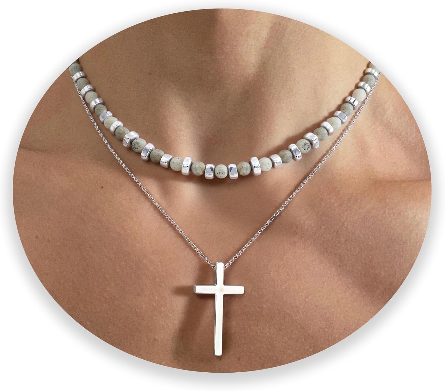 2PS Cross Necklace for Men - Black Obsidian Necklace - 6mm Healing Crystals Beaded Choker Necklace Stainless Steel Cross Pendant Jewelry Gifts for Men