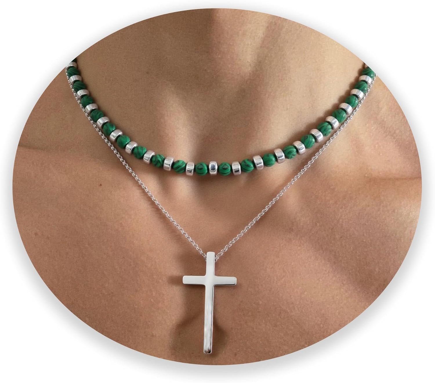 2PS Cross Necklace for Men - Black Obsidian Necklace - 6mm Healing Crystals Beaded Choker Necklace Stainless Steel Cross Pendant Jewelry Gifts for Men
