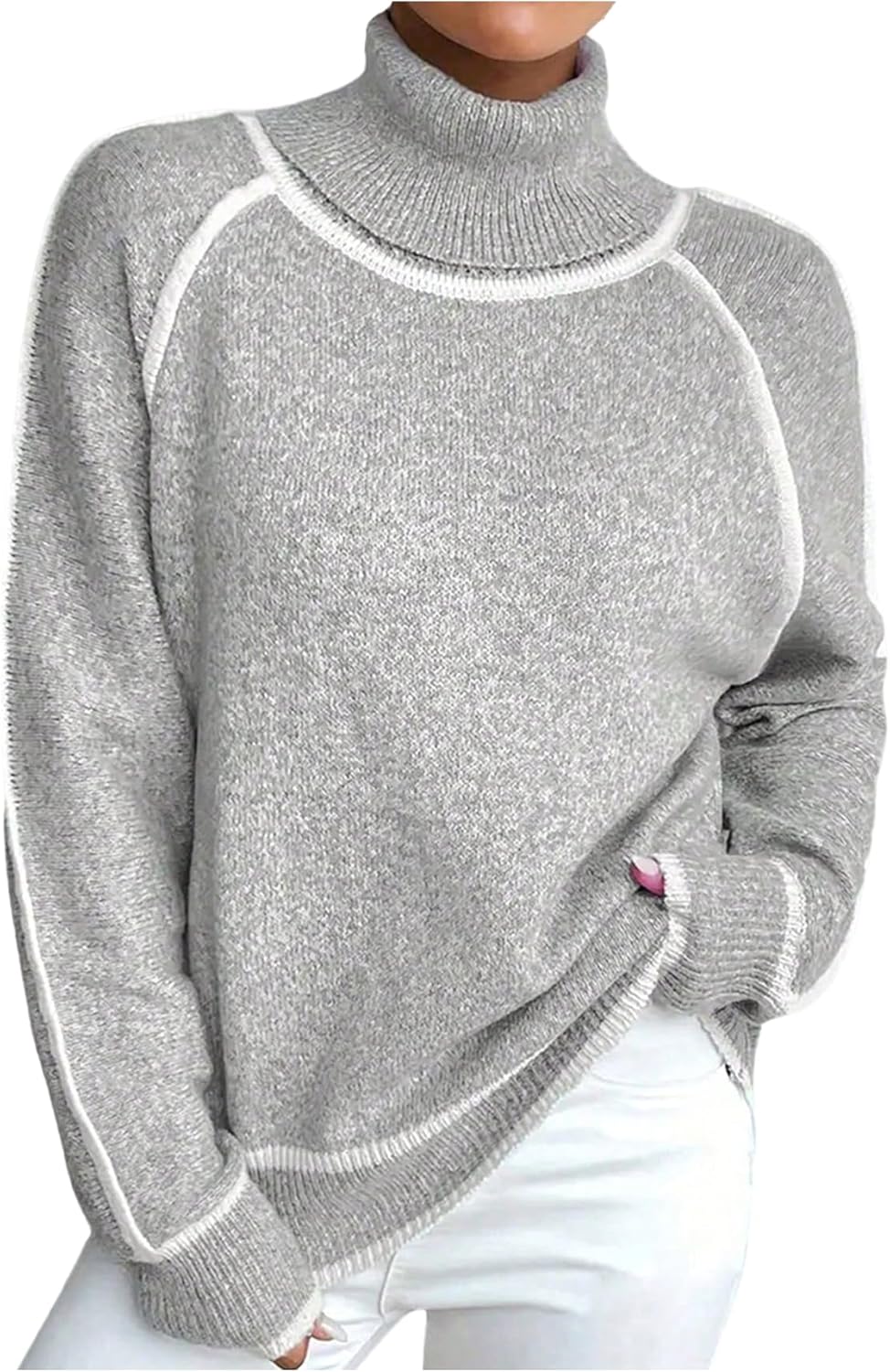 Women's Striped Turtle Neck Sweater Long Sleeve Knit Pullover Sweaters Fall Outfits