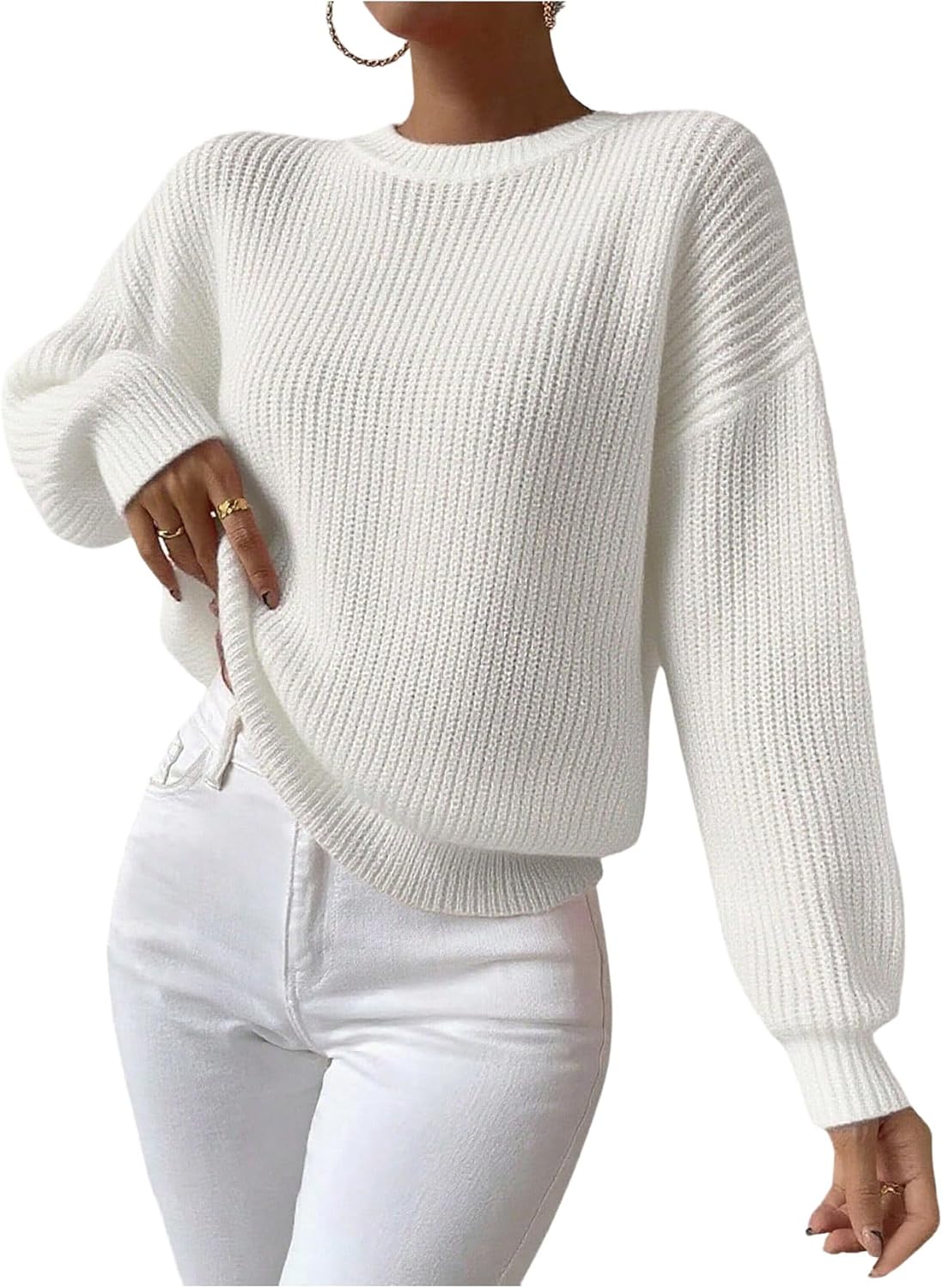 Women's Crochet Sweater Crewneck Long Sleeve Pullover Sweaters Knit Jumper