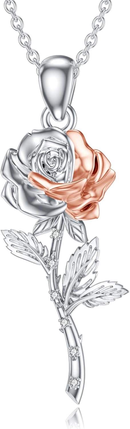 Diamond Rose Flower Necklace for Women 925 Sterling Silver Rose Pendant Jewelry Gifts for Mom Wife Girlfriend for Mother's Day Birthday