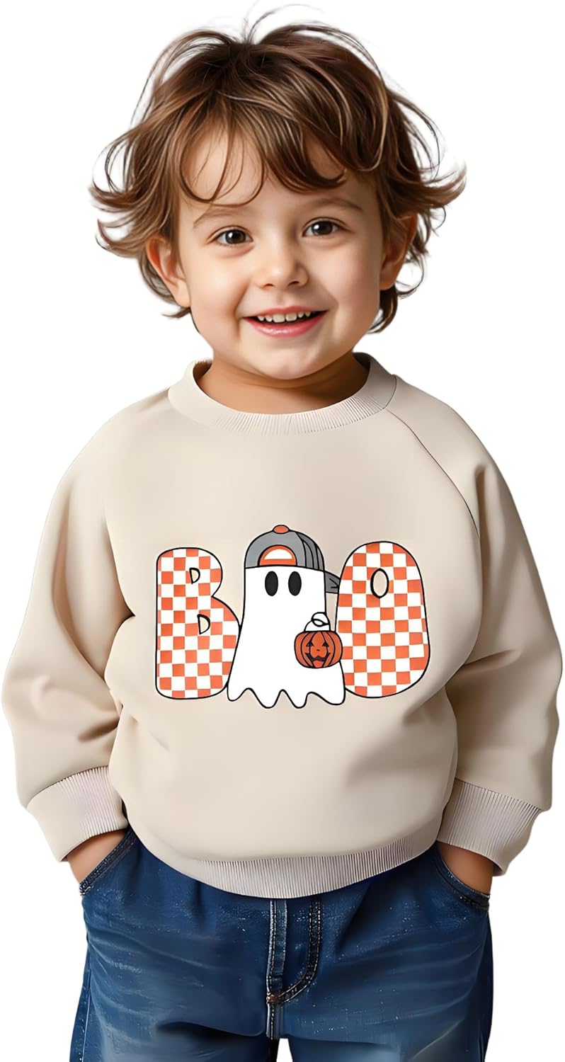 Kids Toddler Baby Boys Girls Halloween Sweatshirt Long Sleeve Boo Ghost Pumpkin Crewneck Pullover Top Fall Clothes