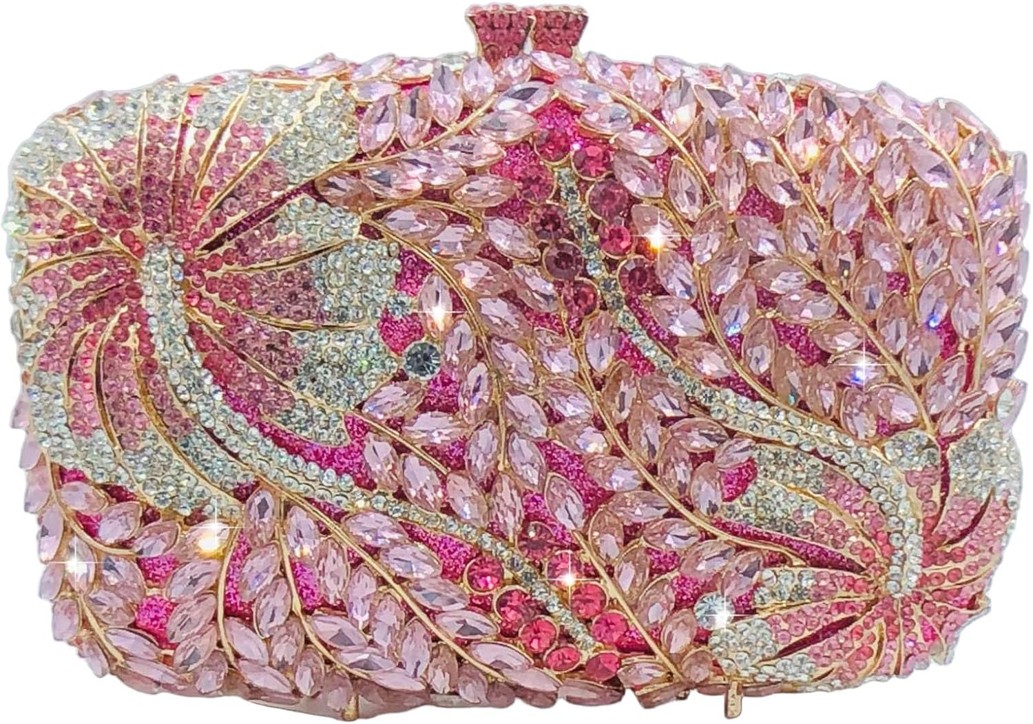 Boutique De FGG Flower Evening Bags Formal Party Floral Crystal Clutch Handbags Bridal Wedding Rhinestone Clutch Purses,Mini