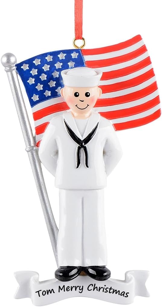 Personalized Navy Ornament - U. S.Soldier Ornament - Unique Patriotic Ornaments - Navy with American Flag - Gifts for Men – Military Keepsakes,- Gift for Vetera Christmas Tree Decoration