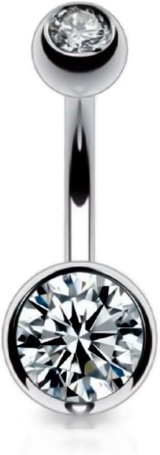 Titanium Belly Button Rings - Clear CZ Titanium Belly Ring for Women - Navel Curved Barbell Belly Button Ring - Belly Piercing Jewelry 14G