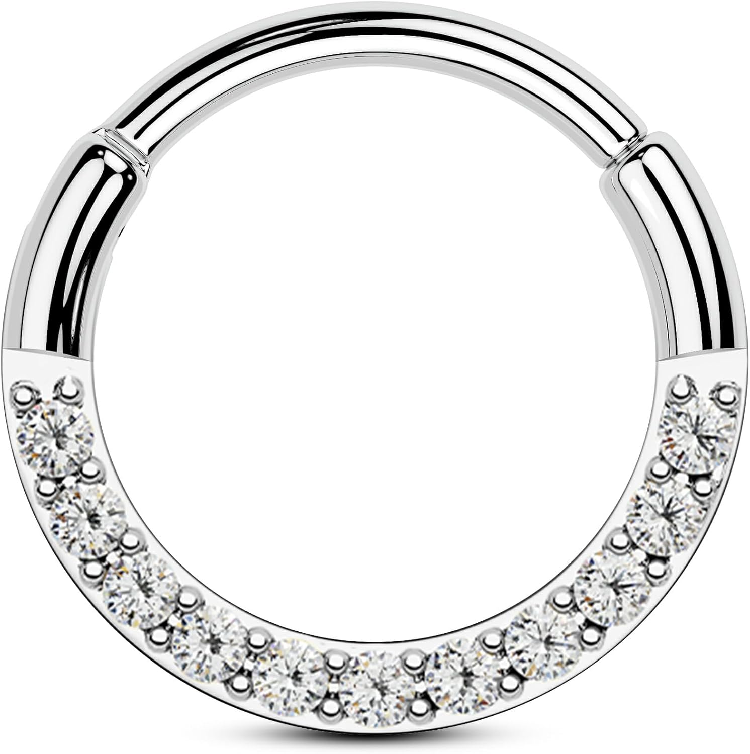 OUFER 20G Nose Rings Hoops, Shiny Clear CZ Hoop Nose Ring For Women, 316L Surgical Steel Hinged Segment Daith Piercing Jewelry, Inner Diameter 6/7/8MM Cartilage Rook Helix Lobe Tragus Earrings