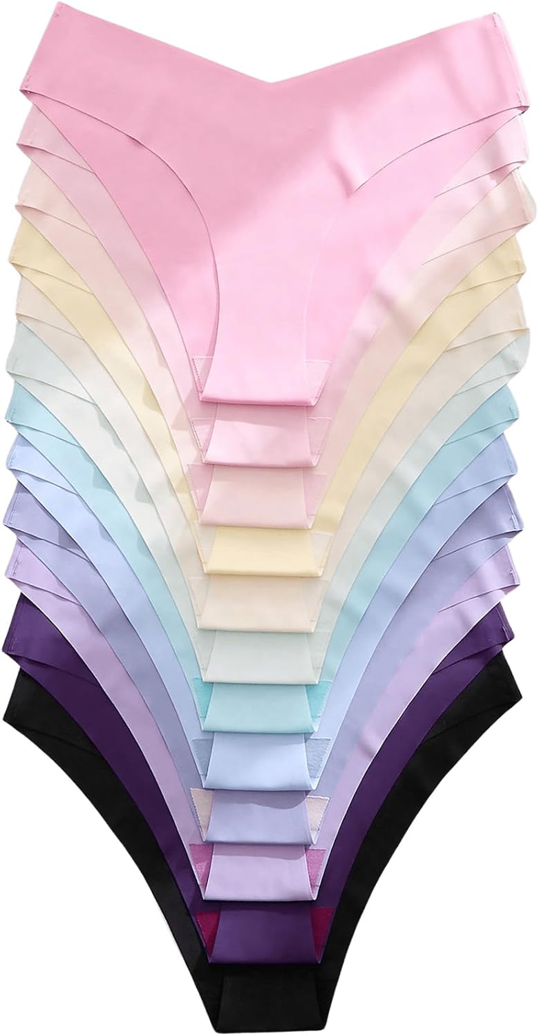 OYOANGLE Women's 12 Packs Seamless Low Rise Underwear No Show High Cut Comfy Panties Sets