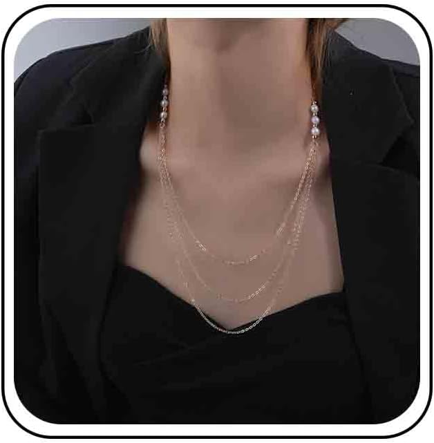 Vintage Layered Pearl Choker Necklace Triple Stand Necklace Pearl Pendant Necklace Gold Layered Chain Necklace Jewelry for Women