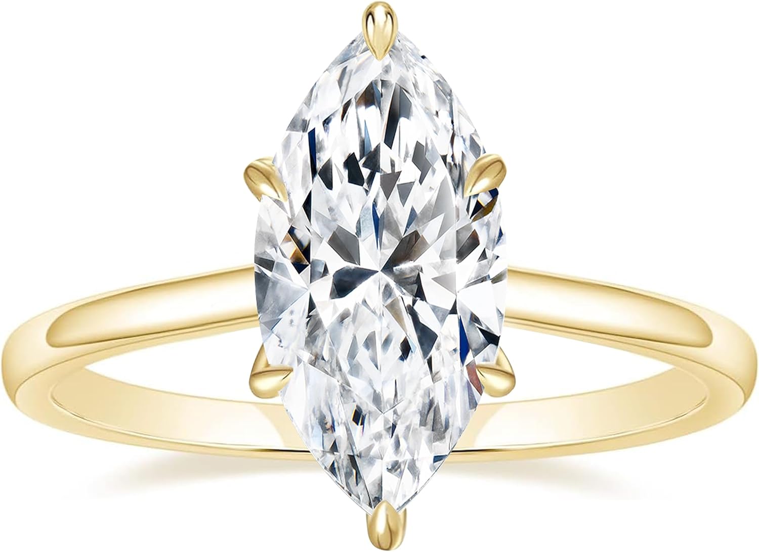 Marquise Engagement Ring for Women, 9ct 18K Gold Plated Solitaire Promise Ring with Cubic Zirconia in Sterling Silver