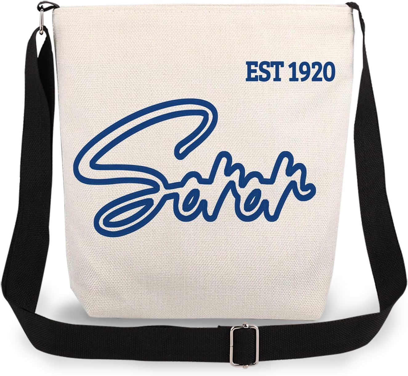 Soror 1920 Print Canvas Crossbody Bag, Adjustable Strap Lightweight Purse with Top Zipper & Inner Pocket, Daily Shoulder Bag Gift for Women