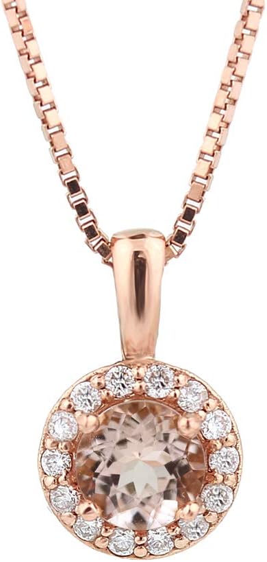 14 Karat Rose Gold Round Shape 3/4 CT Natural Morganite & Diamond Pendant