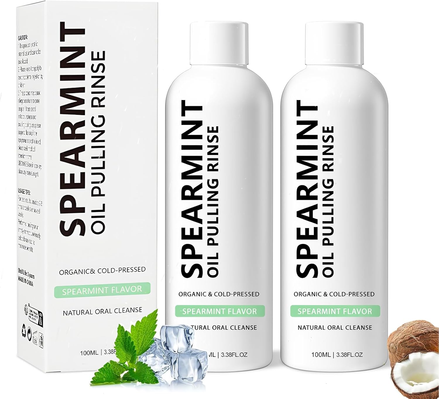 Spearmint Oil Pulling Rinse, Cold-Pressed Coconut Oil, Powerful Organic Peppermint Oil for Whitening Teeth, Mint Mouthwash, Freshness Breath (2)
