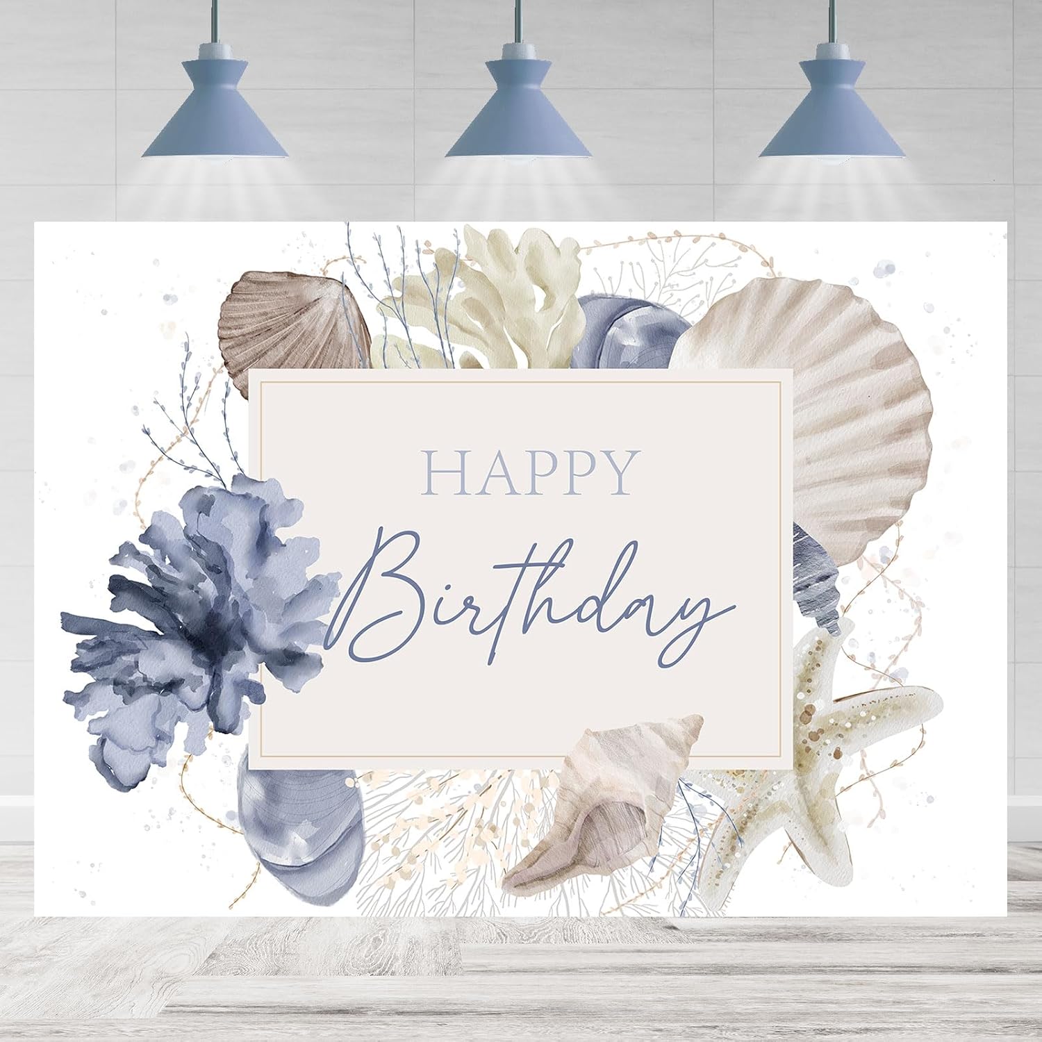 Happy Birthday Backdrop Boho Coastal Shell Coral Photography Background Happy Birthday Party Decoration Supplies Cake Table Banner Photo Booth Studio Props 7x5ft