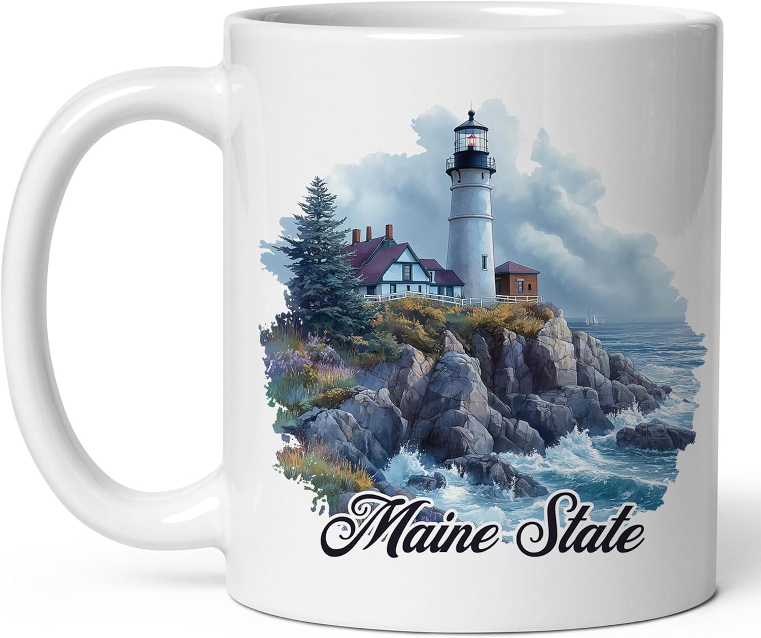 Maine State Ceramic Coffee Mug 11oz Pine Tree State – Tea Coffee Mug with Comfortable Grip – Unique Travel Gift Cup for Office or Home – Vibrant Long-Lasting Print ID44991