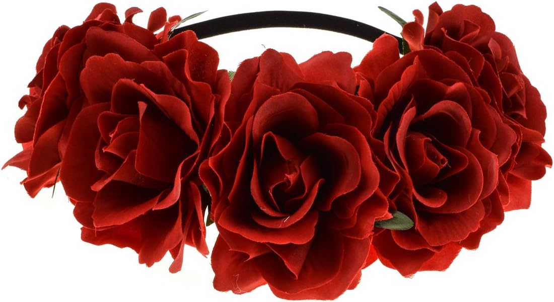 June Bloomy Rose Floral Crown Garland Flower Headband Headpiece for Wedding Festival