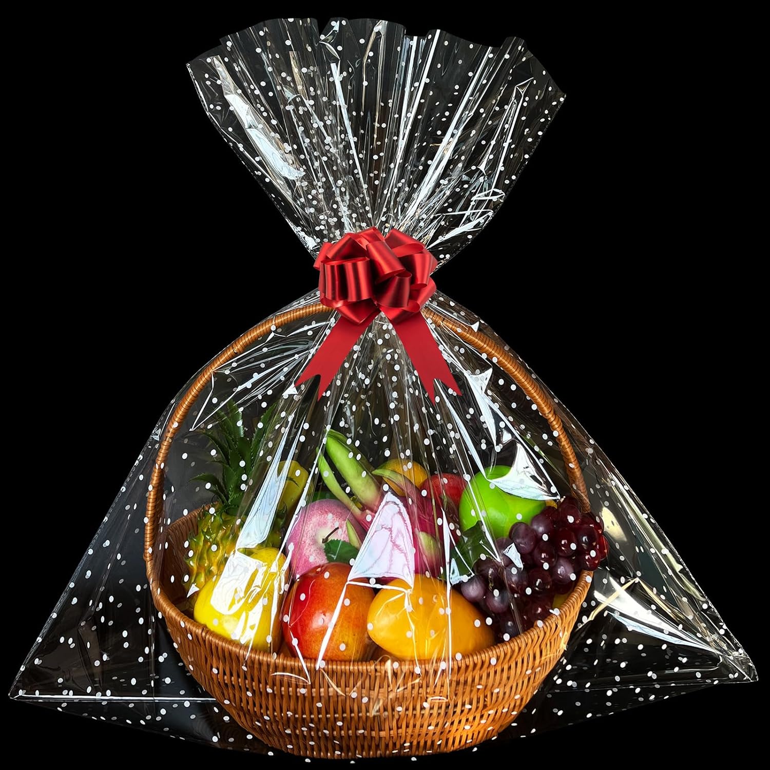 - What You Will Get - 10 pieces 28 x 32 inches clear gift bags large with polka dots (Opening on 28"). Ideal size for medium-to-large gifts and baskets, such as raffle baskets, auction fundraiser, Christmas basket, flower arrangement, gift boxes and much more.