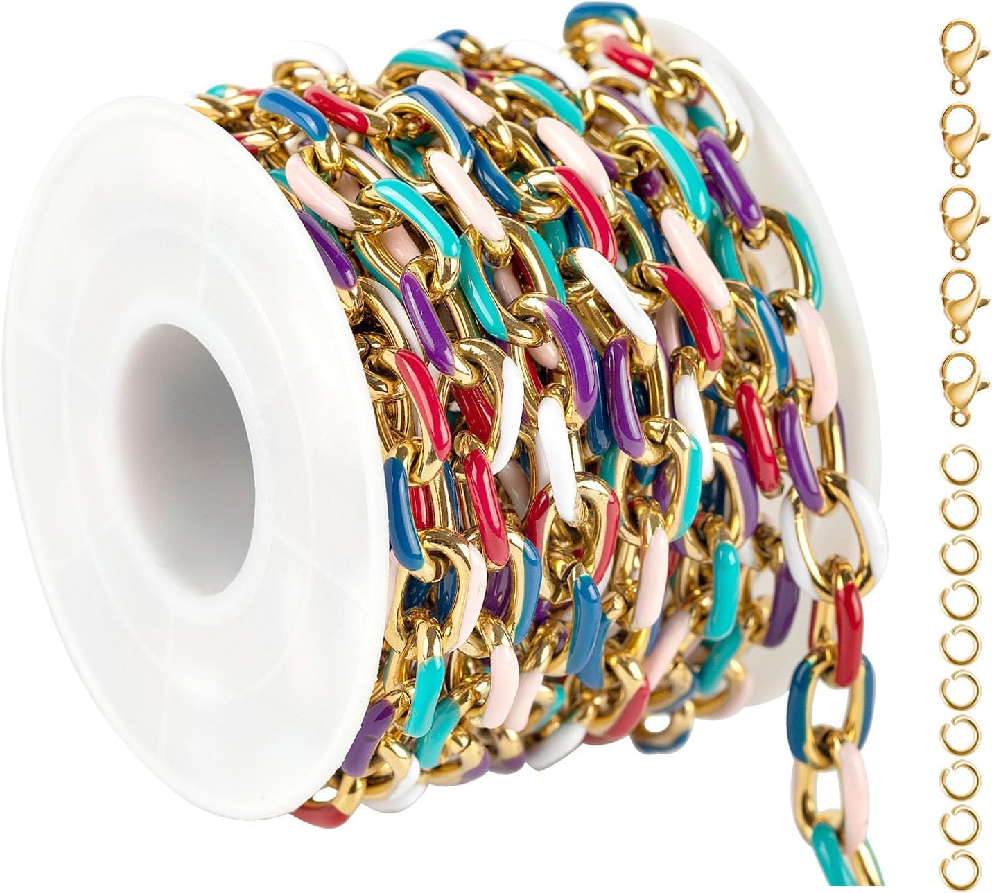 - Jewelry Chain Bulk: You can get 2 meters of mixed color enamel paperclip chains on a spool, comes with 5pcs lobster clasps and 10pcs jump rings. Easy to diy personalized jewelry projects with these jewelry findings.