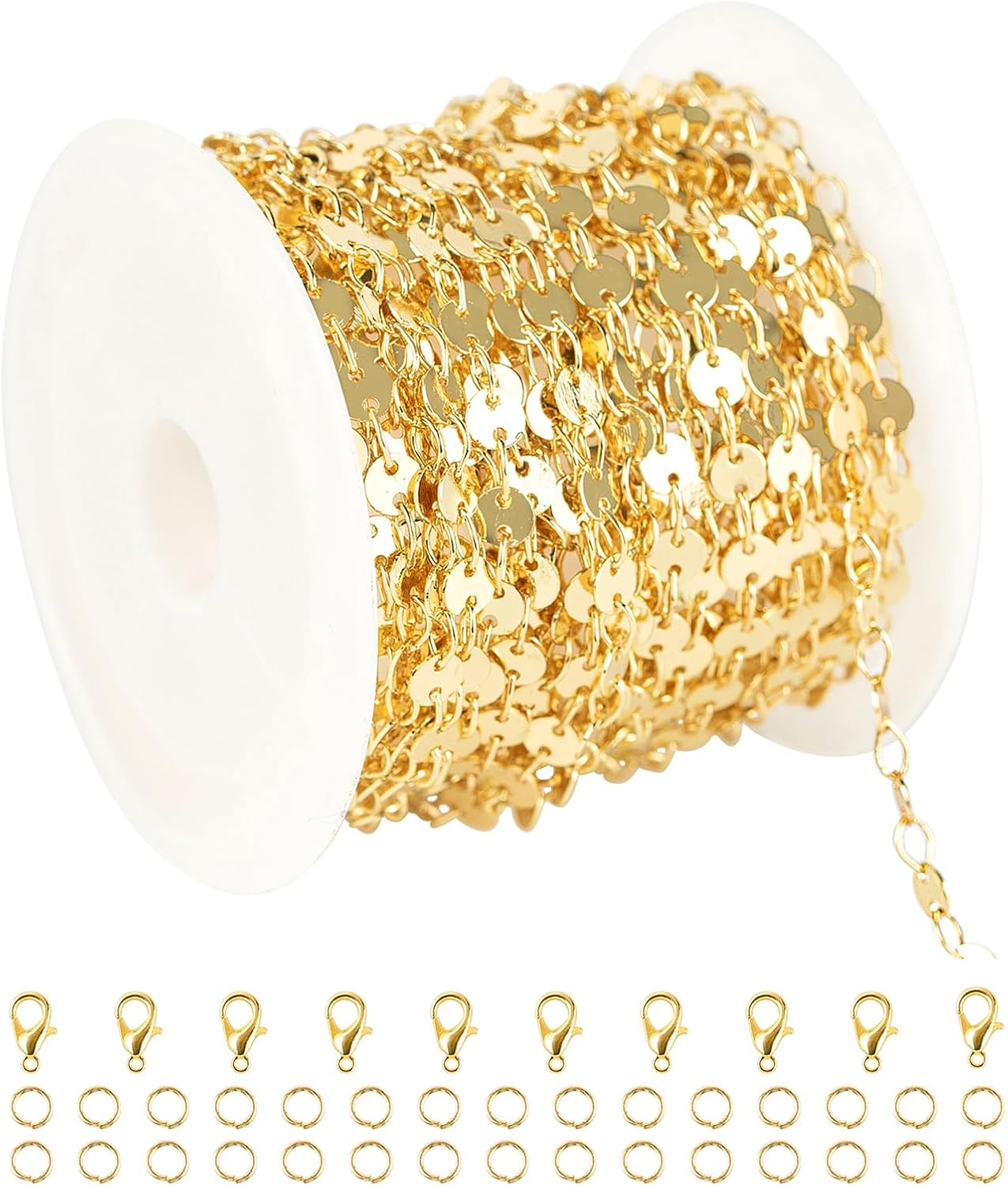 - 【Chain Link Size】The diameter of the sequins are about 4mm, the size of the connection rings are about 3.9mm long, 2.6mm wide; the lobster clasps are about 10mm long; the jump rings are about 5mm inner diameter, 0.7mm thick. Proper size and sufficient quantity allow you to create many jewelry and craft projects.