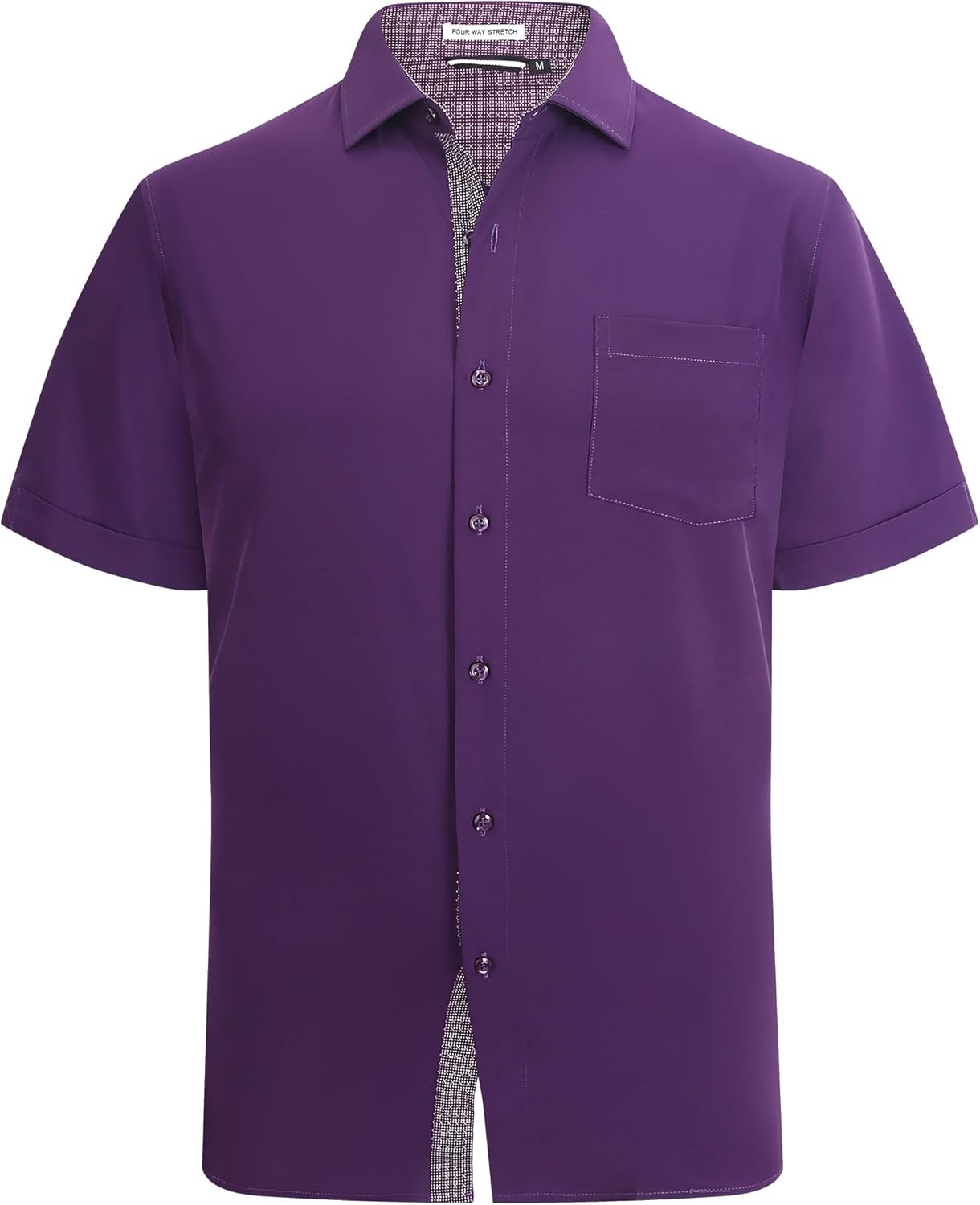 Esabel.C Mens Short Sleeve Dress Shirts 4-Way Stretch Regular Fit Stretch Wrinkle-Free Casual Button Down Shirts