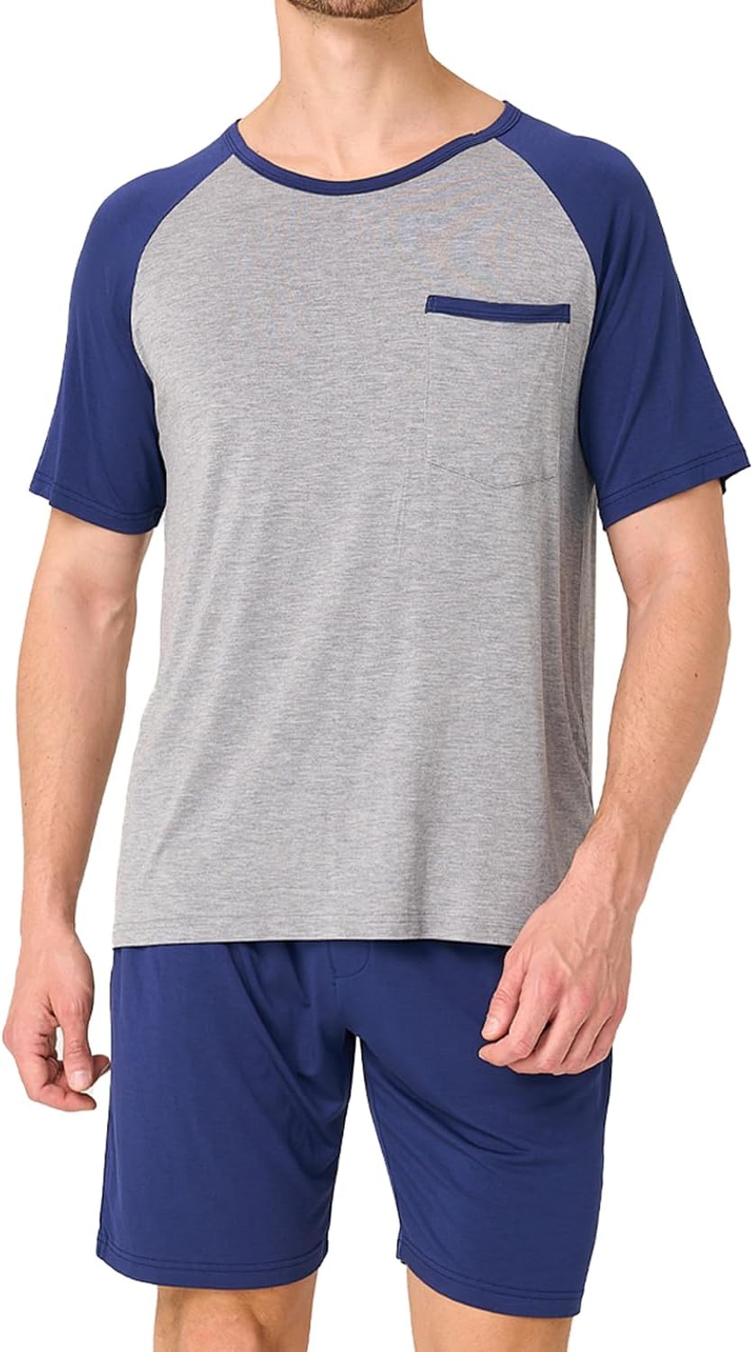 BAMBOO COOL Mens Pajama Set Summer Pjs Sleepwear Short Sleeve Shirts Soft Lightweight Sleep Sets Loungewear with Pockets