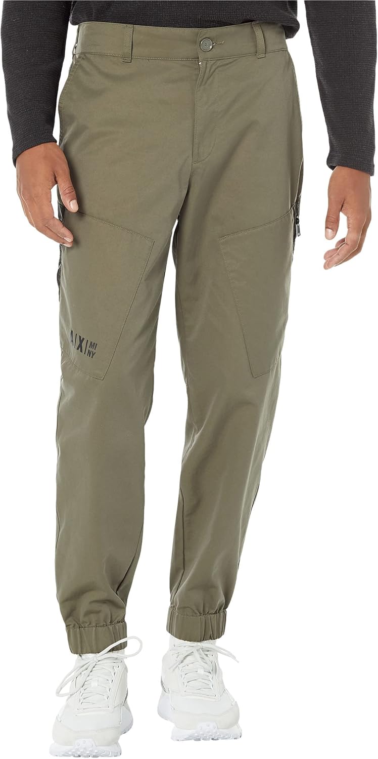 Armani Exchange Men's Twill Patch Pocket Cargo Jogger, Medium Green/Dark Green, 28