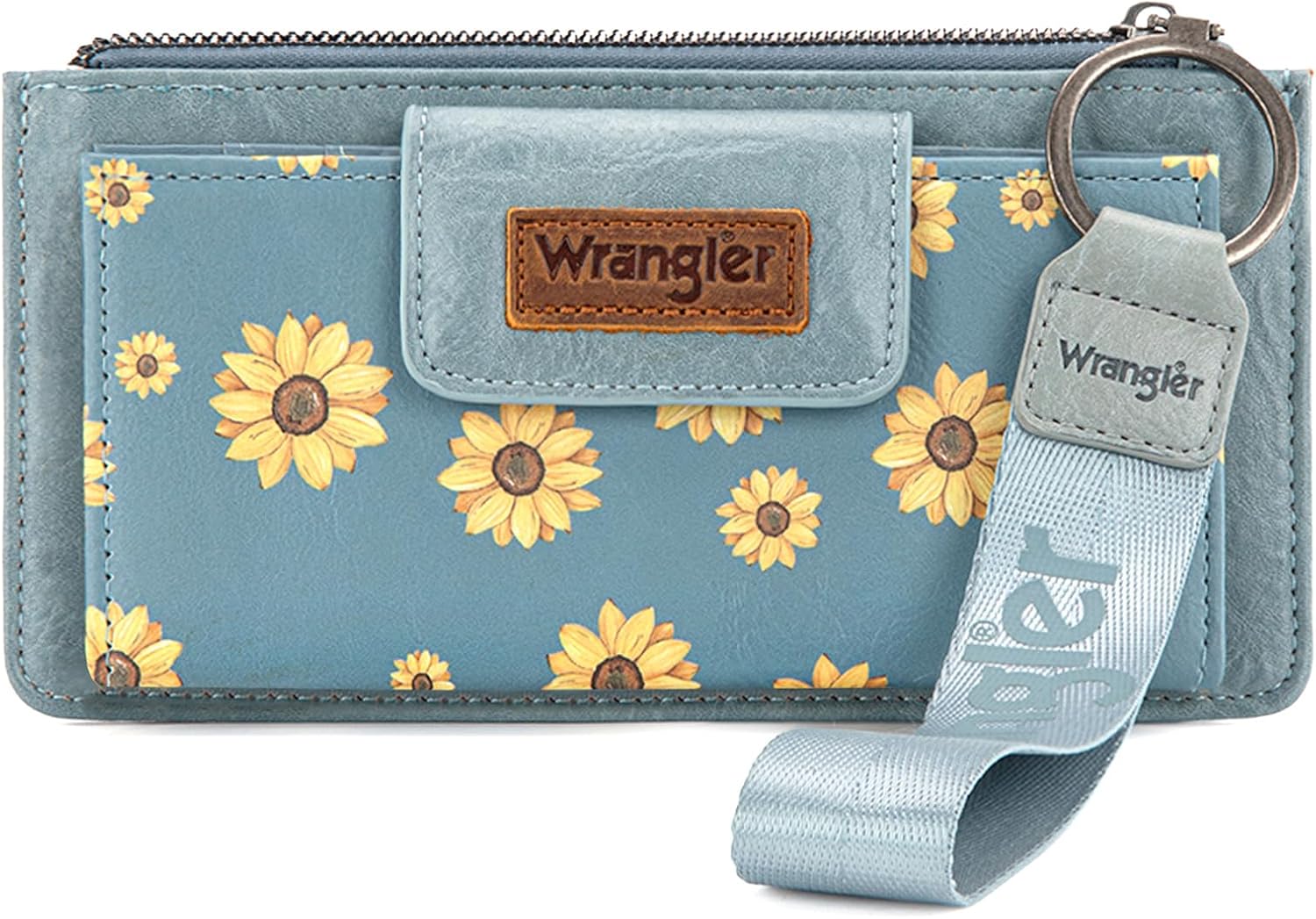 X Wrangler Wallet for Women Floral Wristlet Wallets Ladies Female Large Clutch Wallets with Coin Purse and Rfid Lining