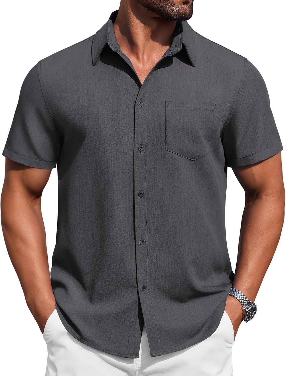 COOFANDY Mens Button Down Short Sleeve Shirt Casual Summer Stretch Denim Dress Shirts with Pocket