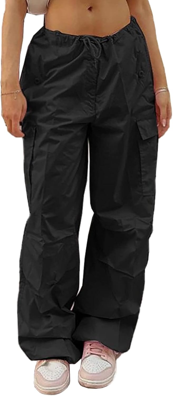 LQI Parachute Pants for Women Y2K Baggy Cargo Pants Drawstring Trousers Low Rise Loose Jogger Sweatpants