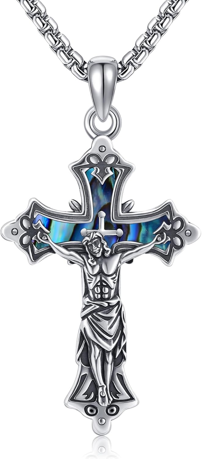Crucifix Necklace Men 925 Sterling Silver Jesus Cross Pendant Necklace for Men Catholic Pendant Christian Crucifix Jewelry Christmas Gifts