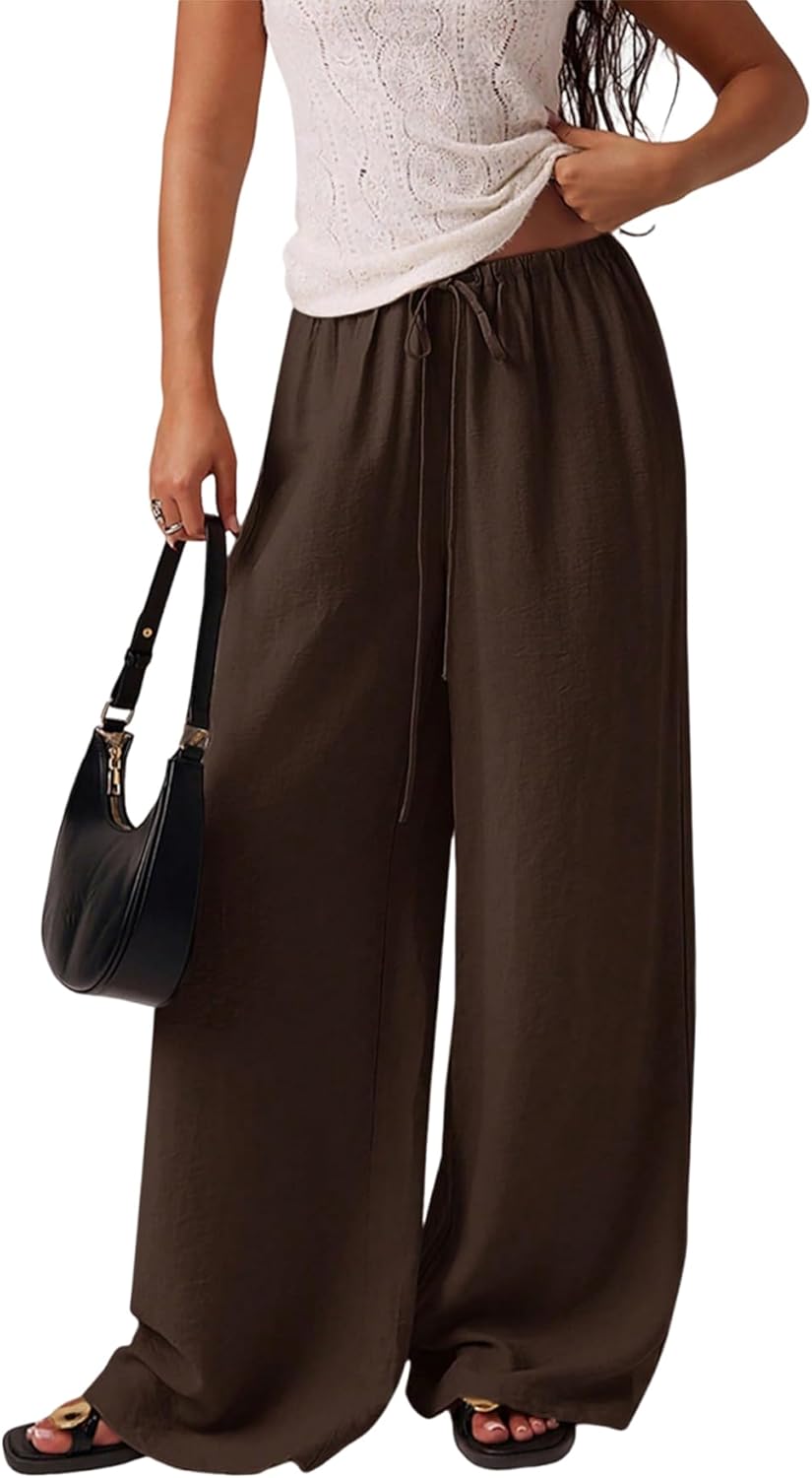 GORGLITTER Women's Wide Leg Palazzo Pants Casual Loose Lounge Linen Pants Boho Beach Trousers