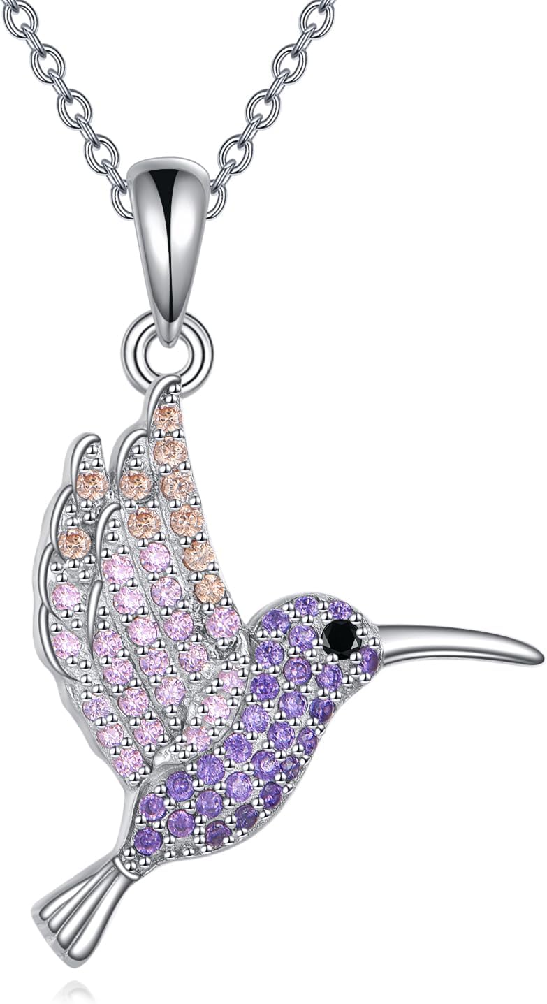 Hummingbird Necklace for Women 925 Sterling Silver Flying Bird Pendant with Colorful Cubic Zirconia Jewelry Gift for Women