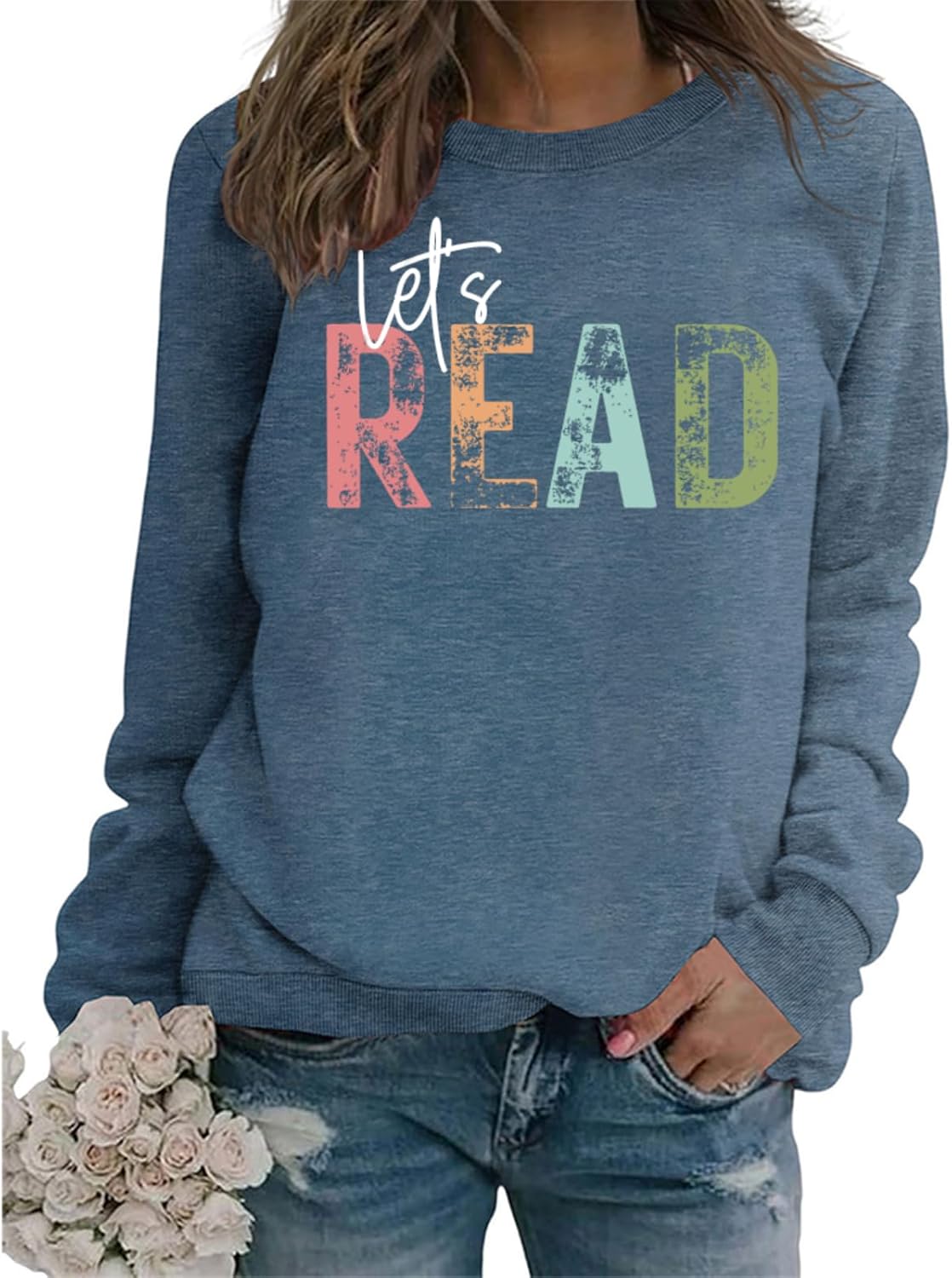 Reading Book Sweatshirt Women Let's Read Graphic Long Sleeve Shirts Teacher Book Lover Bookish Pullover Tops