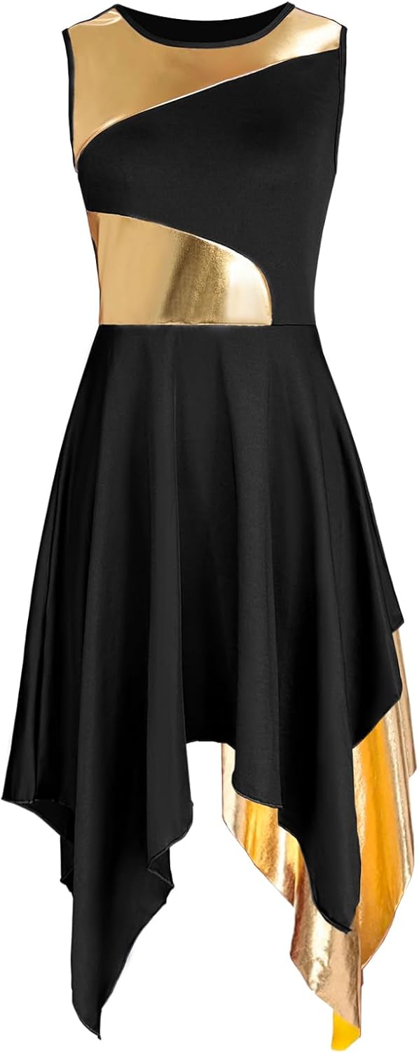 Women's Praise Dance Dress Spliced Color Metallic Asymmetric Liturgical Worship Dance Costume Lyrical Dancewear