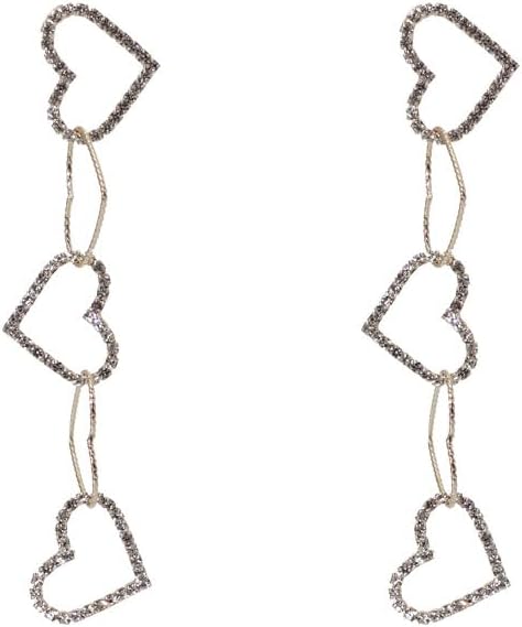 18K Gold Plated Triple Heart Dangle Earrings with Cubic Zirconia & Crystal Accents – Elegant Hollow Heart Drop Statement Earrings for Women