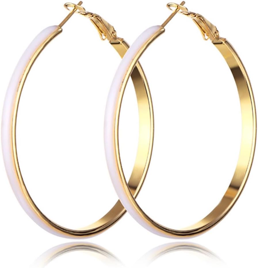 Multicolor Enamel Hoop Earrings Retro Bright Colorful Round Dangle Drop Earrings for Women Jewelry